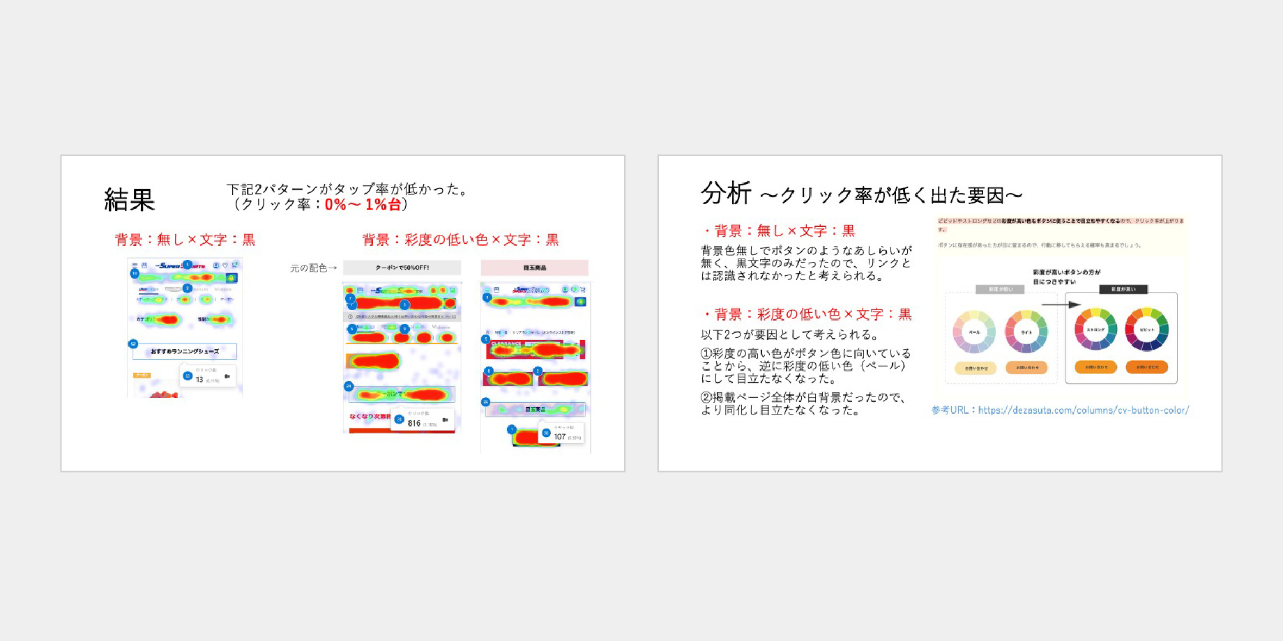 誤タップ率は約2〜3%から0〜1%台へと低減し、ユーザーの意図しない操作を抑制することができました。本施策の結果をチーム内に共有したところ、同様の課題を抱えていた他のLPにも展開され、約10ページにわたって見出し背景色の改善が行われました。