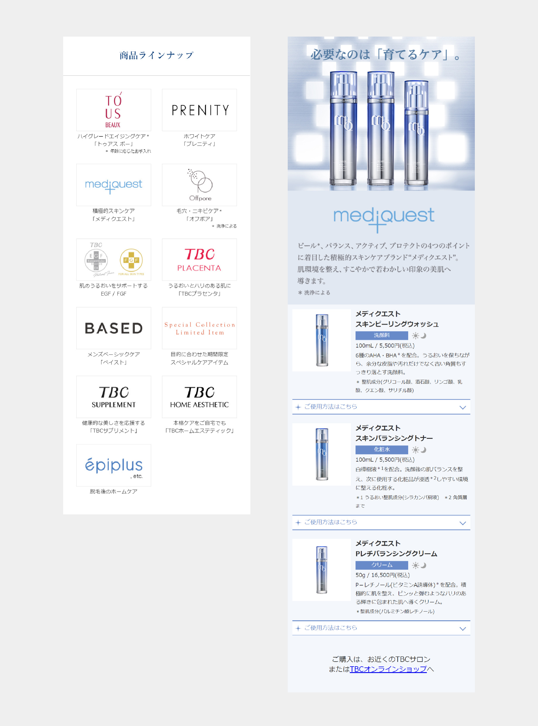 エステサロンTBCのSP専用商品カタログサイトの新規制作案件。
